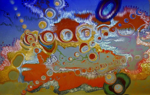 The surfaces of the paintings also recall a topography, a reference to the oligarchs’ concern with land (real estate) and sub-soil ownership rights, as well as the measures they are willing to take to secure them.